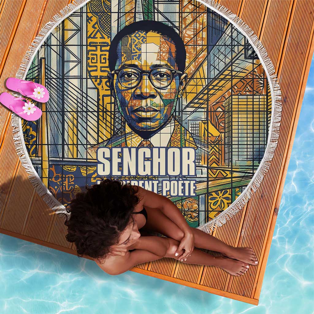 Léopold Sédar Senghor Beach Blanket President Poete Portrait Futuristic African Robotic Handshake Earth and Flowers Unity