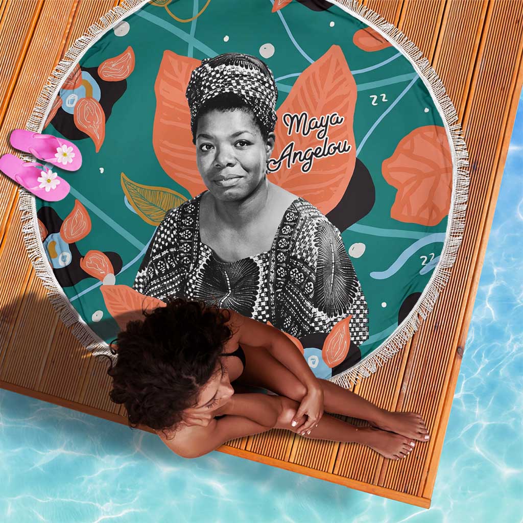 Maya Angelou Beach Blanket Inspirational Quote Design Vibrant Teal and Orange Leaf Motif