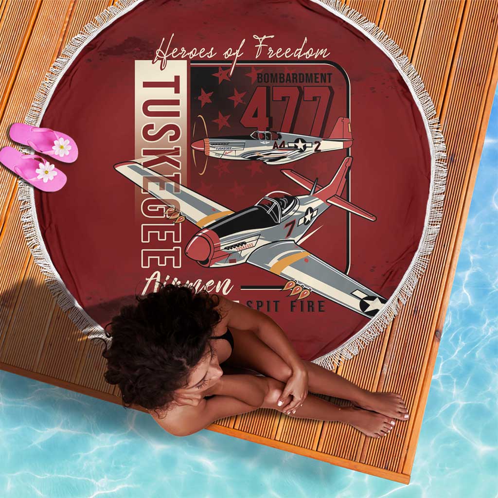 Tuskegee Airmen Spit Fire 477th Beach Blanket Crimson Grunge