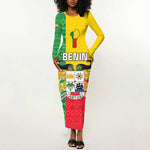 Personalised Afro Benin Long Sleeve Bodycon Dress Flag Style - African Pattern