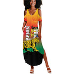 Personalized Benin National Day Summer Maxi Dress Leopard With Coat Of Arms