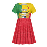 Personalised Afro Benin Kid Short Sleeve Dress Flag Style - African Pattern