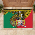 Personalised Benin National Day Rubber Doormat Coat Of Arms With Leopard African Pattern