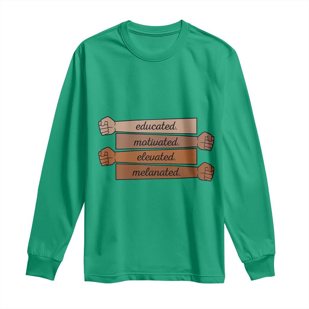 Black Pride Long Sleeve Shirt Educated Motivated Elevated Melanated BLM Melanin