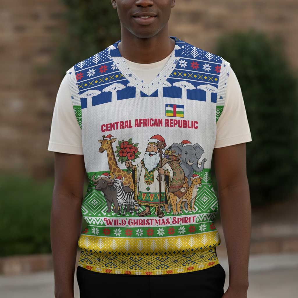 Add the Central African Republic Christmas Knitted V-Neck Vest Santa and Safari Animals Baobab Trees Snowflakes to your cart now and enjoy comfort, quality, and cultural confidence with African Pride.