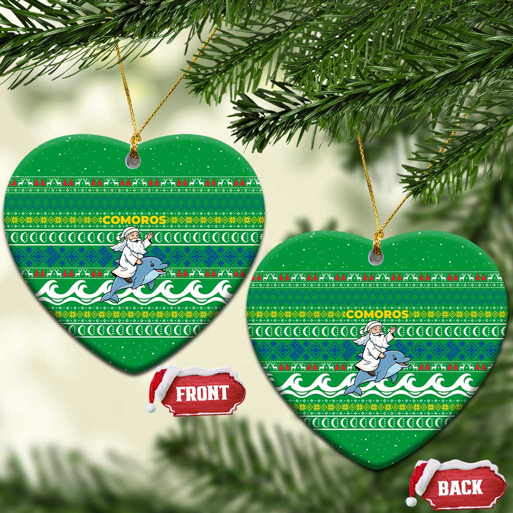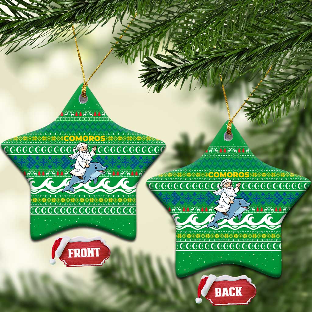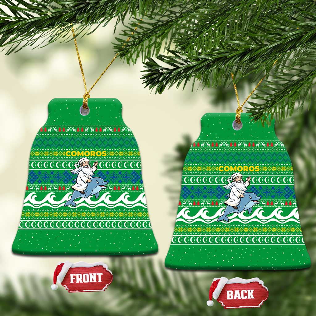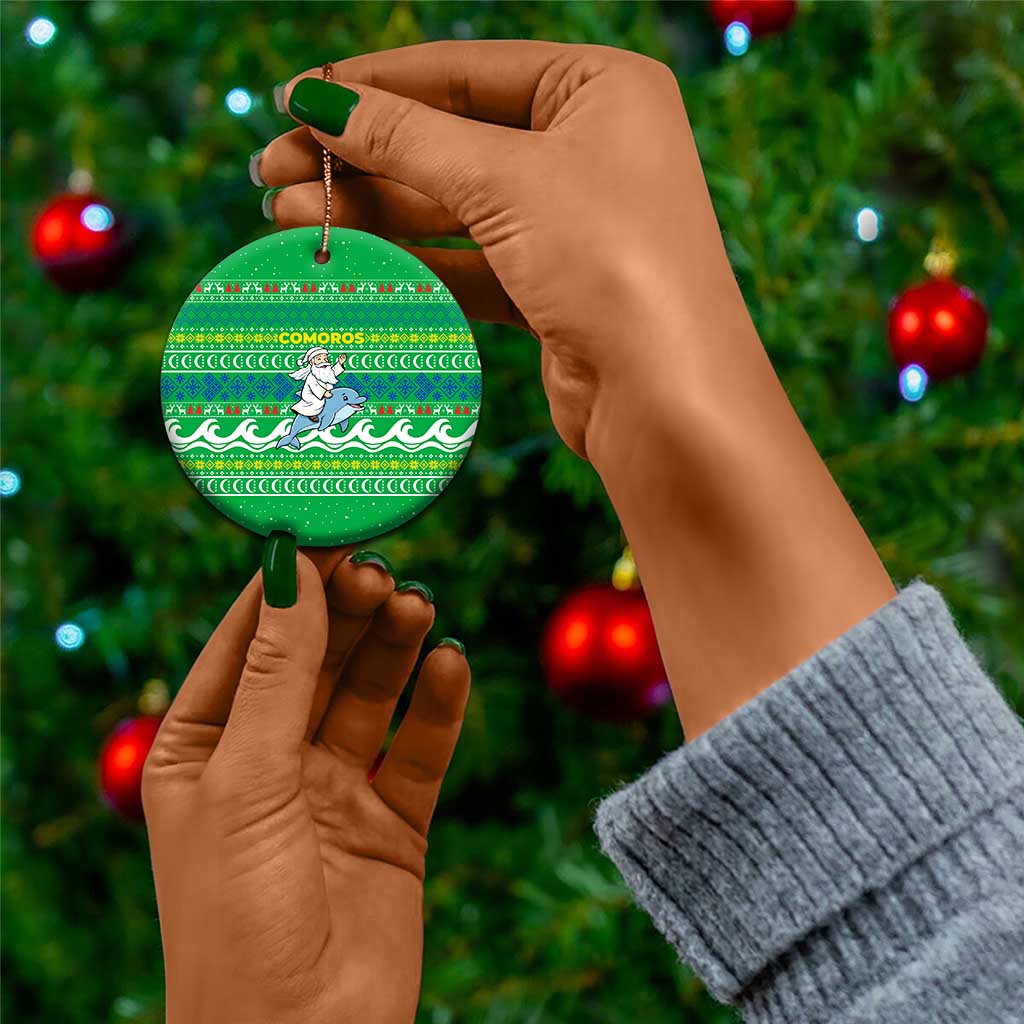 Comoros Christmas Ceramic Ornament Santa Riding Dolphin Ocean Waves Crescent Moon