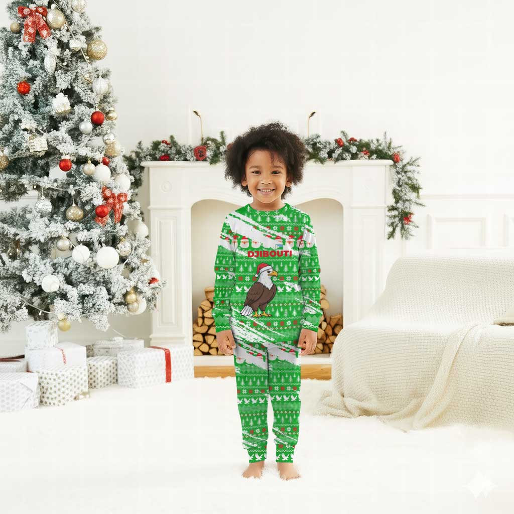 Djibouti Christmas Pajama Set Santa Eagle Doves Trees and Green Snowflake