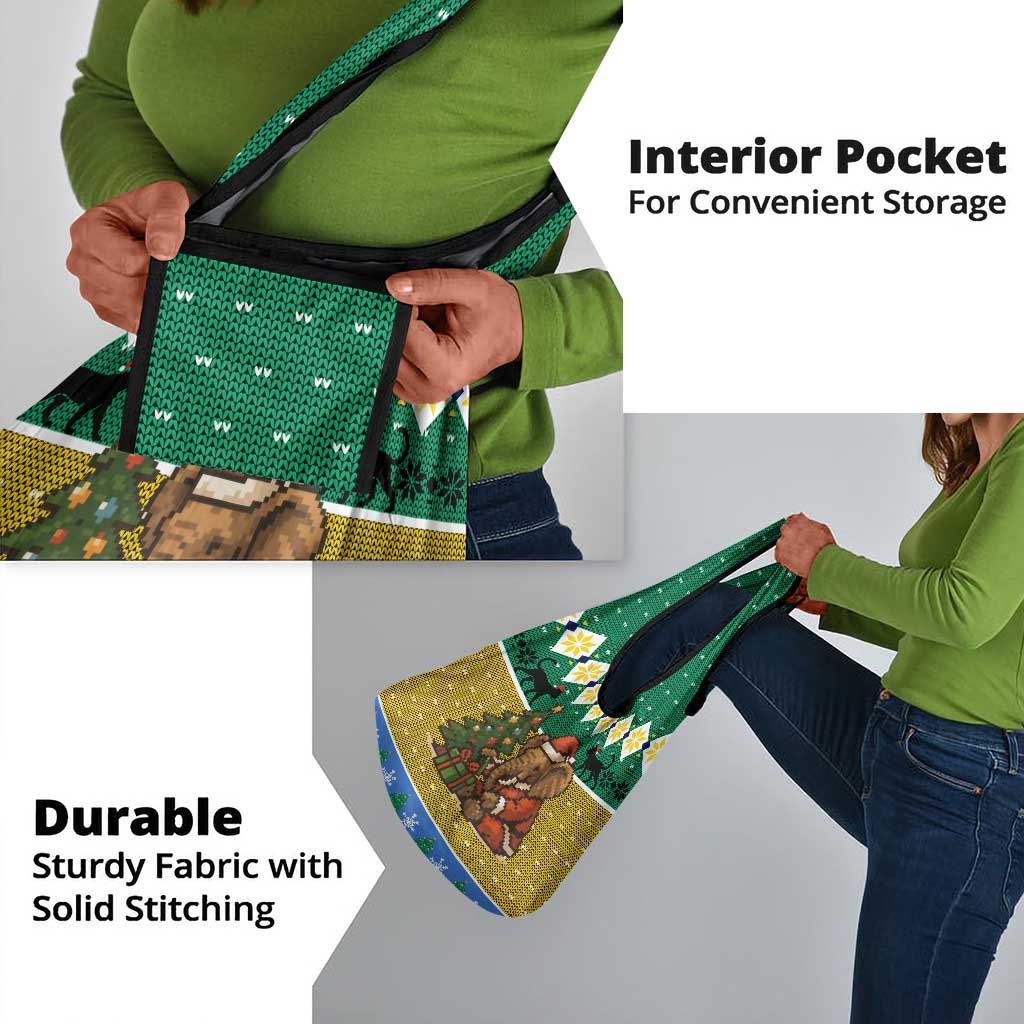 Gabon Christmas Grocery Bag Pixel Art Elephant Santa Christmas Tree and Flag