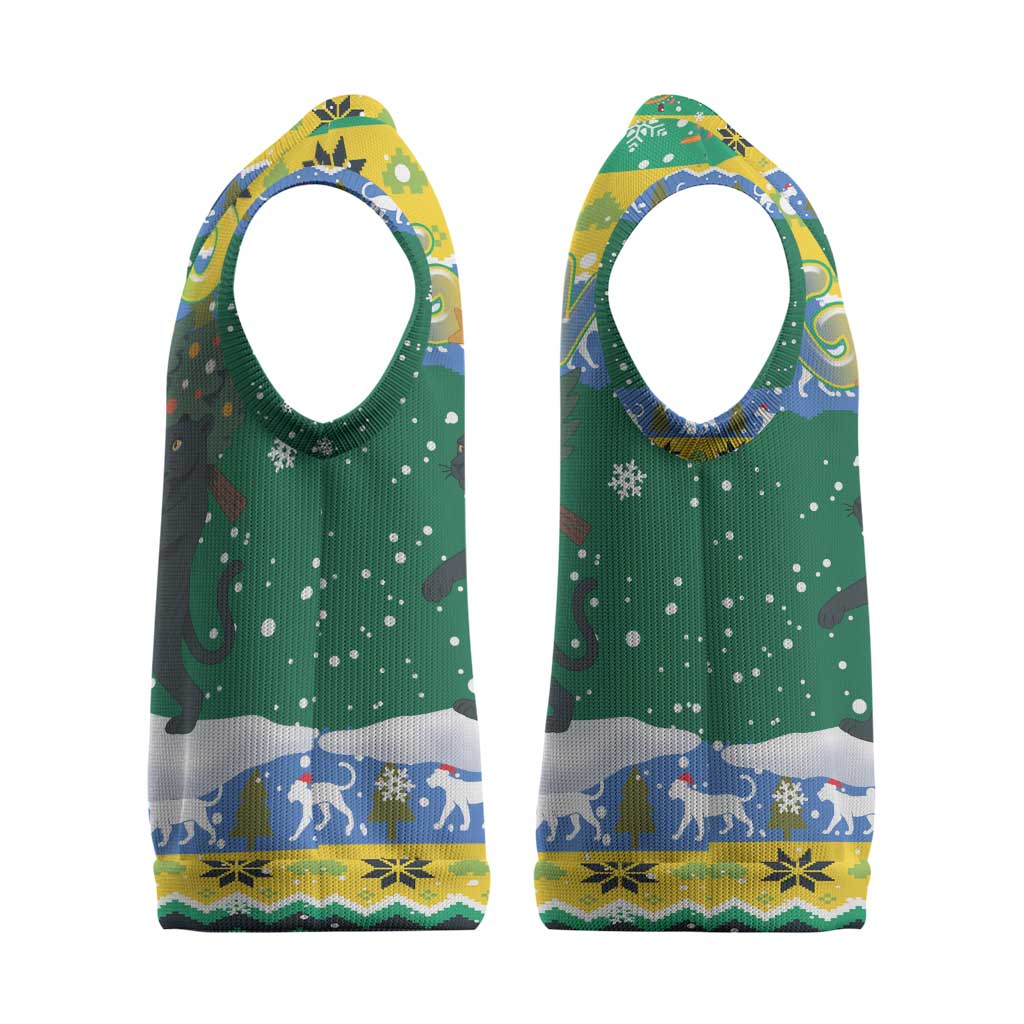 Gabon Christmas Knitted V-Neck Vest Black Panthers Carrying Tree and Snowflake