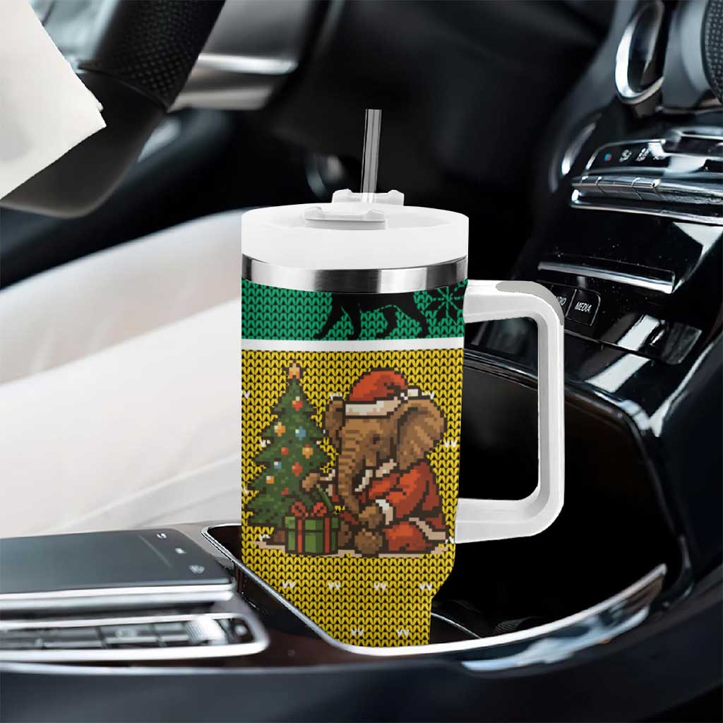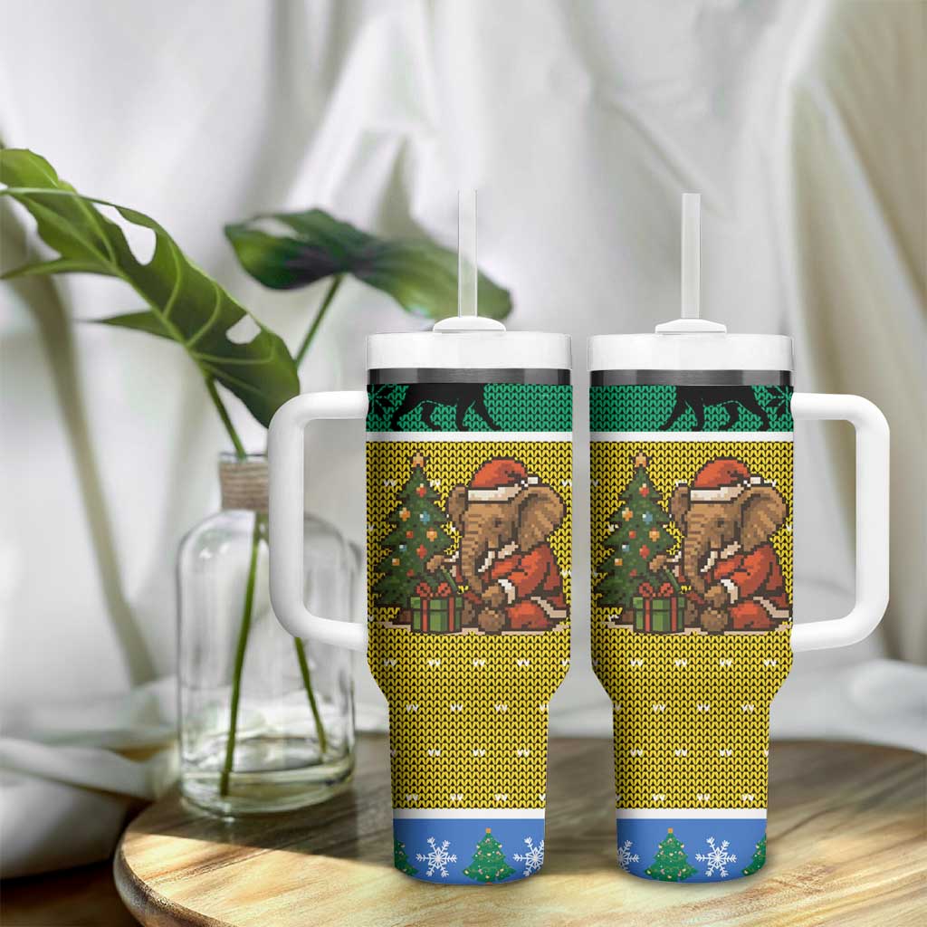 Gabon Christmas Tumbler With Handle Pixel Art Elephant Santa Christmas Tree and Flag