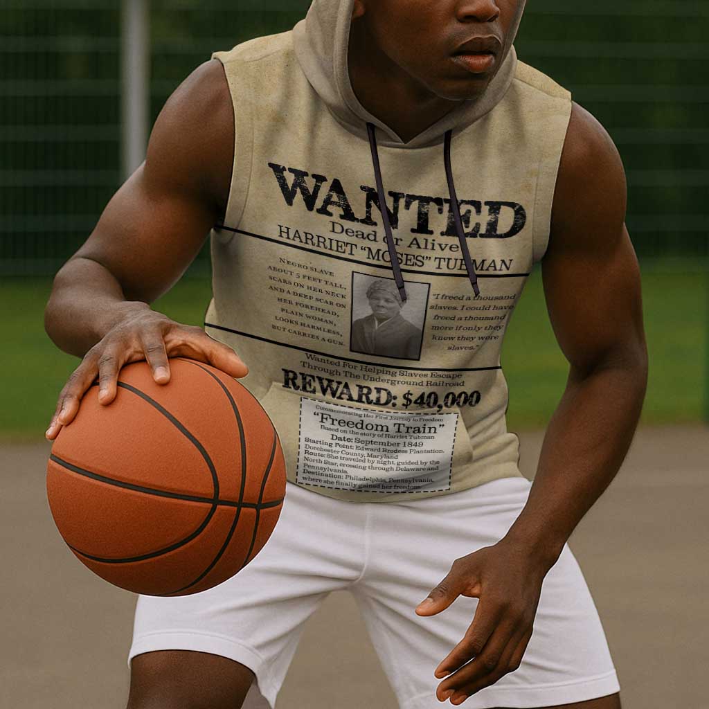 Harriet Tubman Freedom Sleeveless Hoodie Vintage Wanted Poster Style