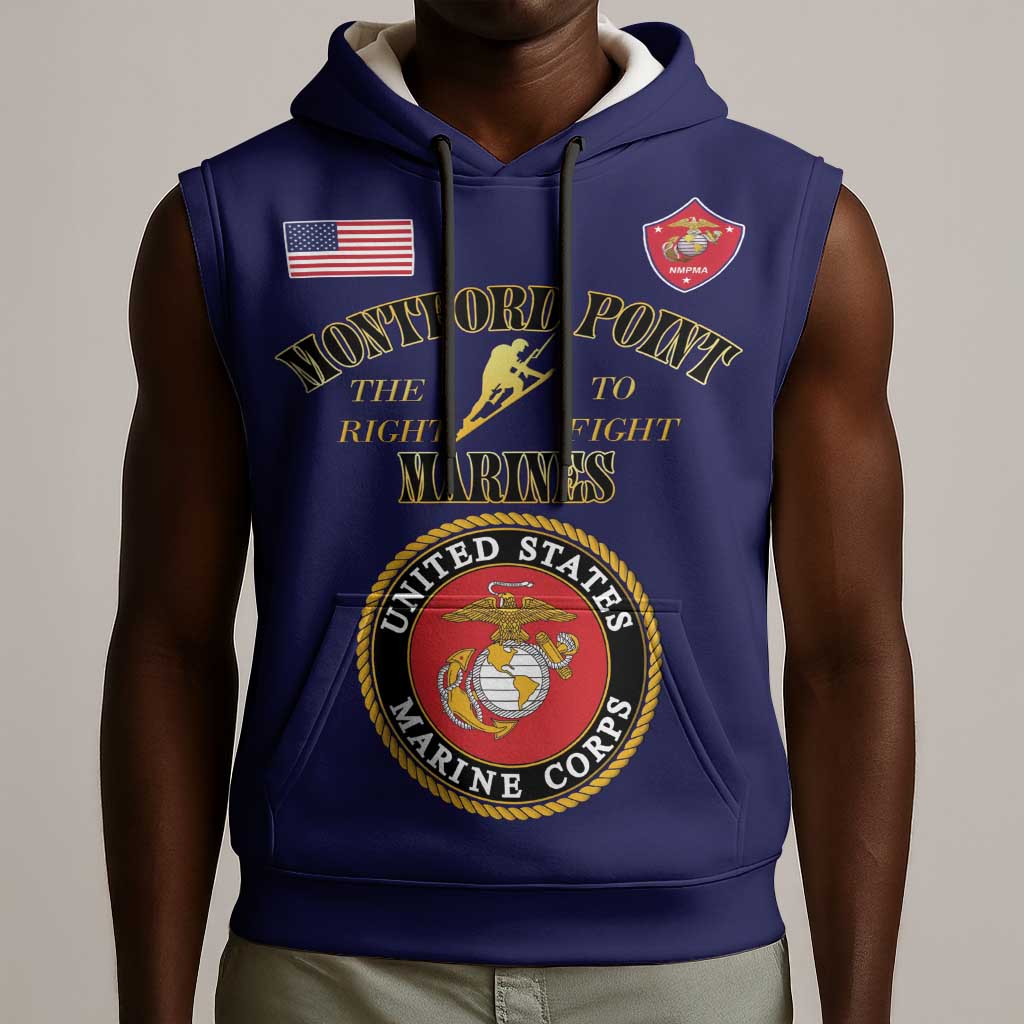 Montford Point Marines Sleeveless Hoodie African American Heroes Navy Blue LT15