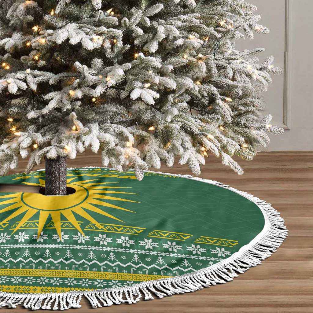 Rwanda Christmas Tree Skirt National Emblem and Radiant Sun Motif
