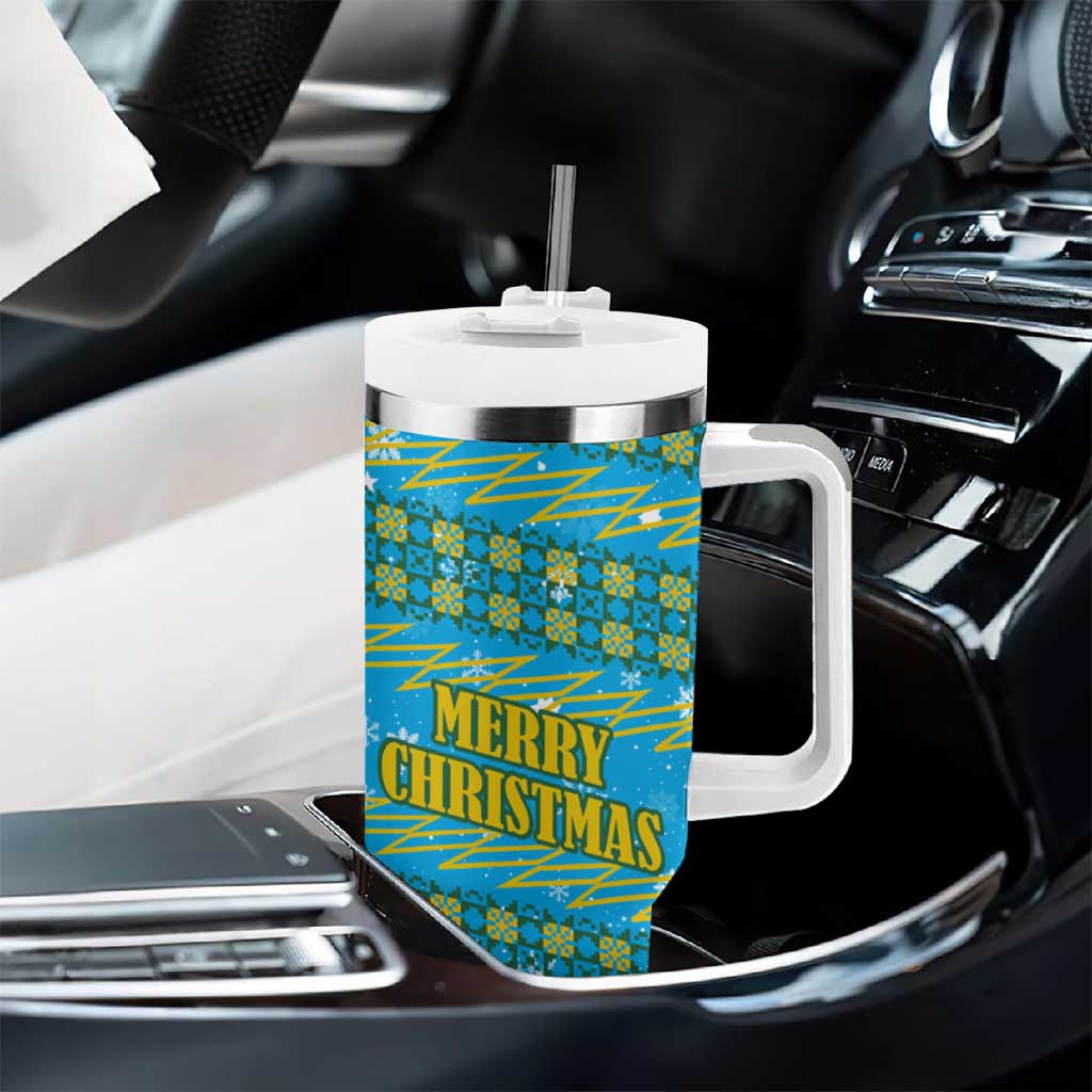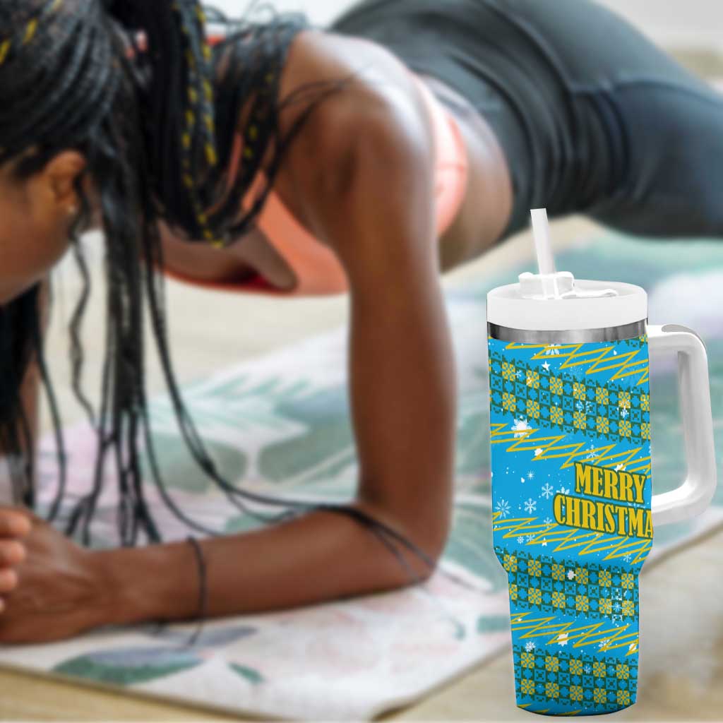 Rwanda Christmas Tumbler With Handle Festive Geometric Motifs and Bold Typography