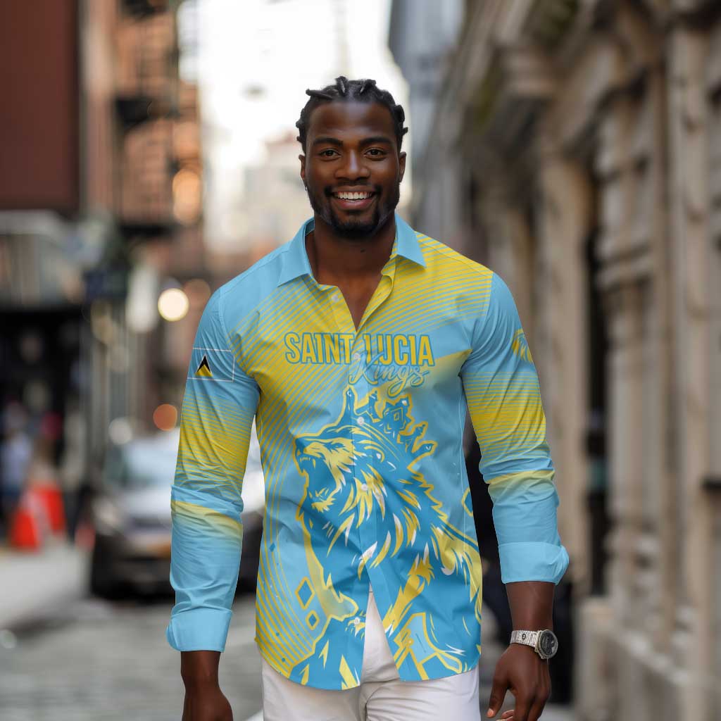 Saint Lucia Cricket Personalized Long Sleeve Button Shirt The Roaring King LT7