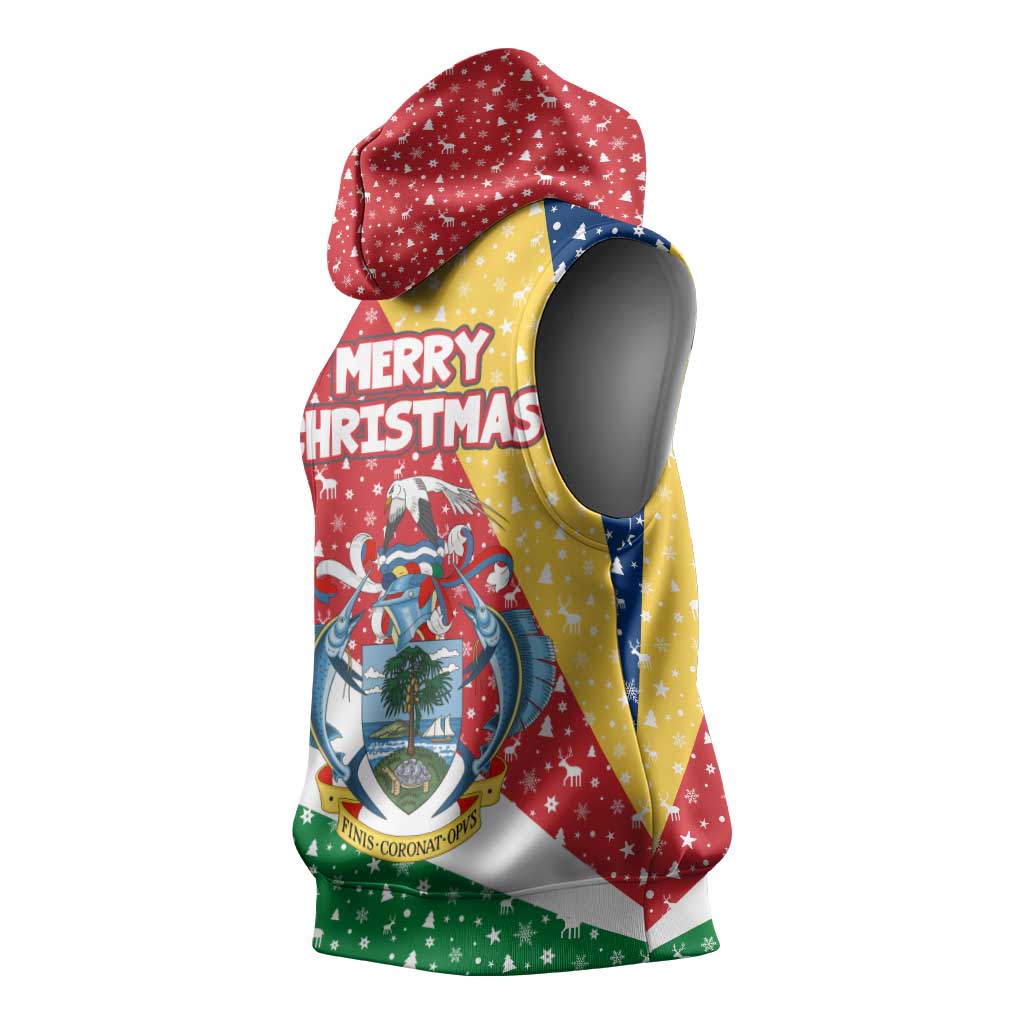 Seychelles Christmas Sleeveless Hoodie Flag Colors Tropical Bird Motif and National Coat of Arms