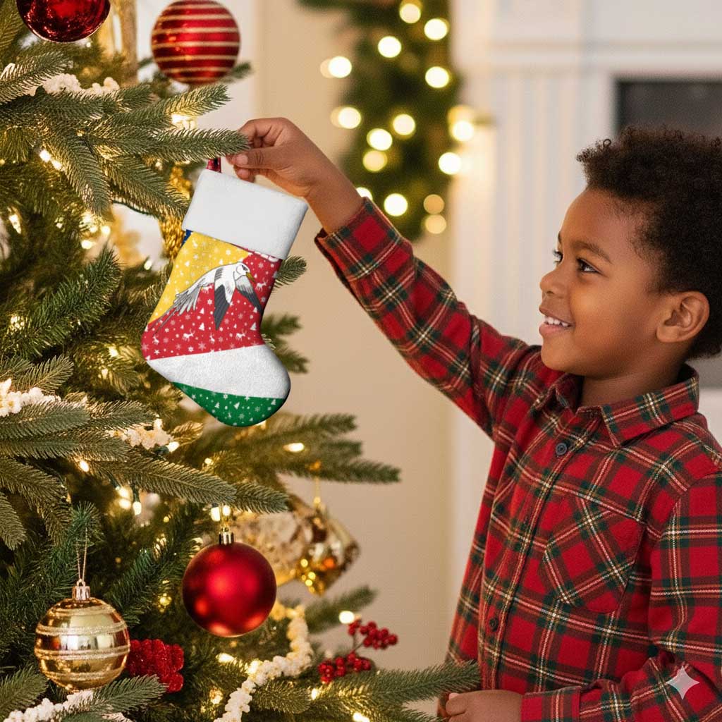 Seychelles Christmas Stocking Flag Colors Tropical Bird Motif and National Coat of Arms