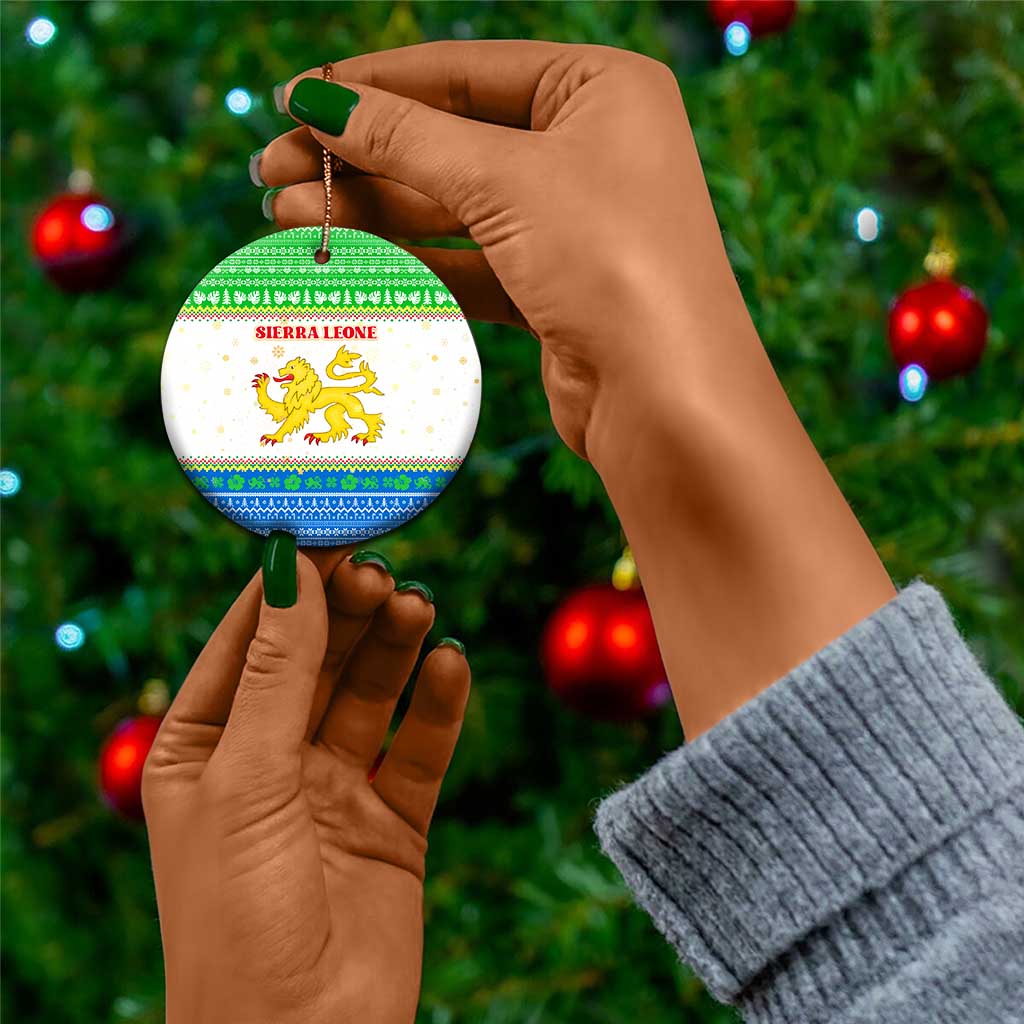 Sierra Leone Christmas Ceramic Ornament Festive Pattern Golden Lion Emblem and Santa Sleigh