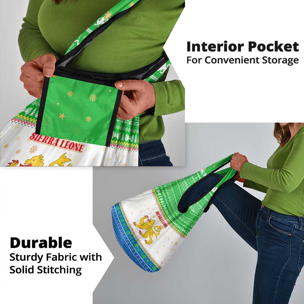 Sierra Leone Christmas Grocery Bag Festive Pattern Golden Lion Emblem and Santa Sleigh