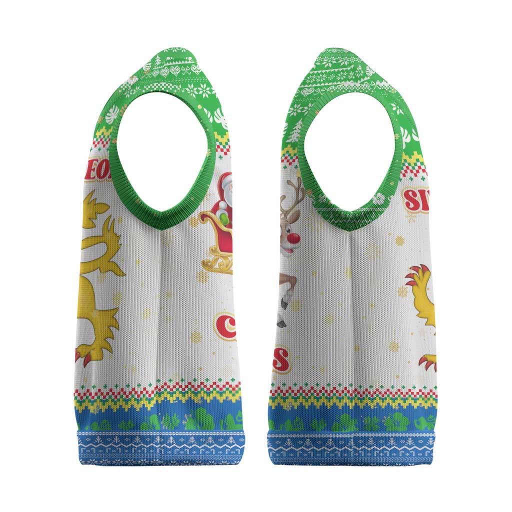 Sierra Leone Christmas Knitted V-Neck Vest Festive Pattern Golden Lion Emblem and Santa Sleigh