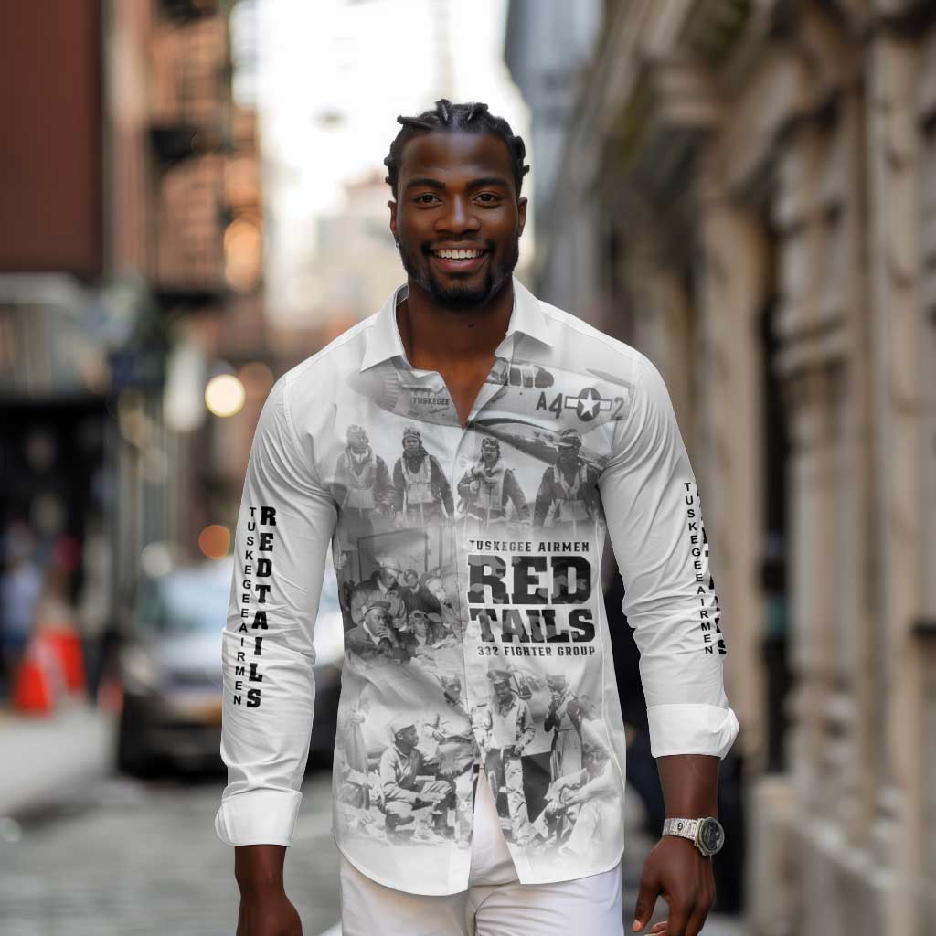 Tuskegee Airmen 332nd Fighter Group Long Sleeve Button Shirt The First to Fly with Honor