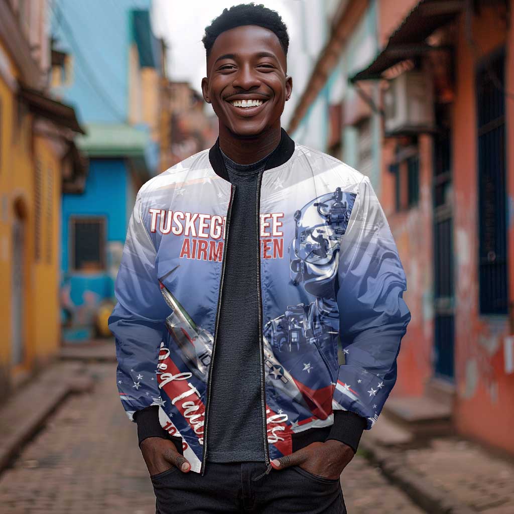 Tuskegee Airmen Red Tails Bomber Jacket Straighten Up and Fly Right - Blue White
