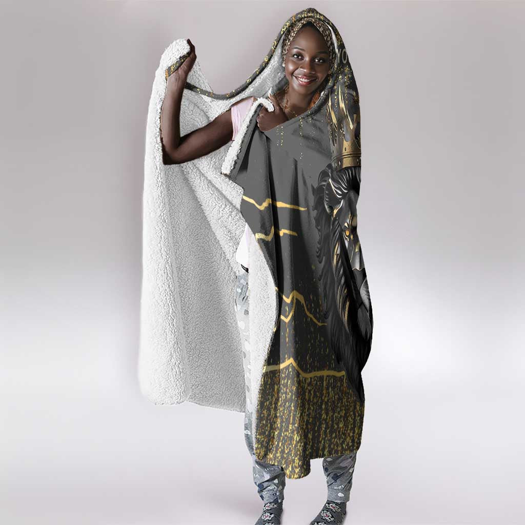 Personalized Black and Gold Lion Africa Hooded Blanket