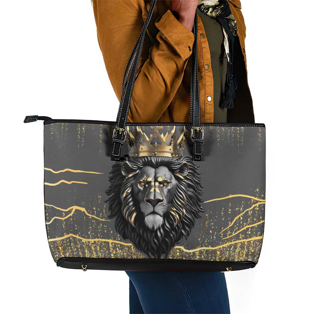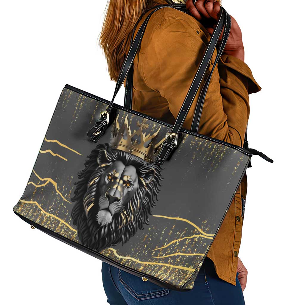Personalized Black and Gold Lion Africa Leather Tote Bag