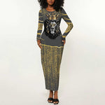 Personalized Black and Gold Lion Africa Long Sleeve Bodycon Dress