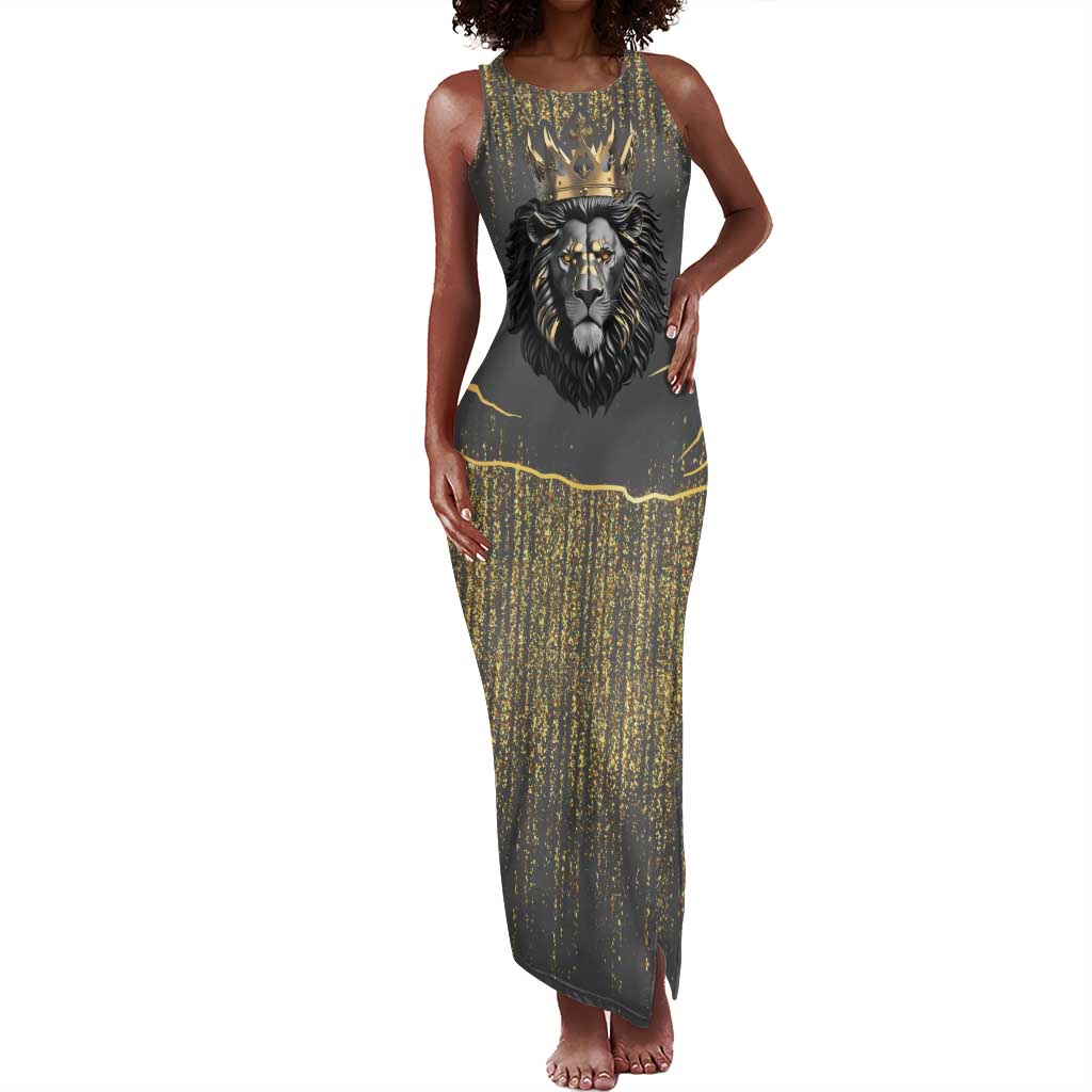 Personalized Black and Gold Lion Africa Tank Maxi Dress