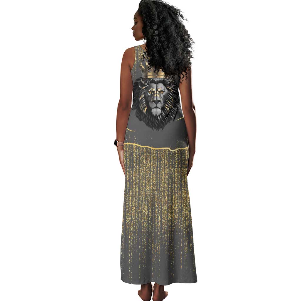 Personalized Black and Gold Lion Africa Tank Maxi Dress DT03