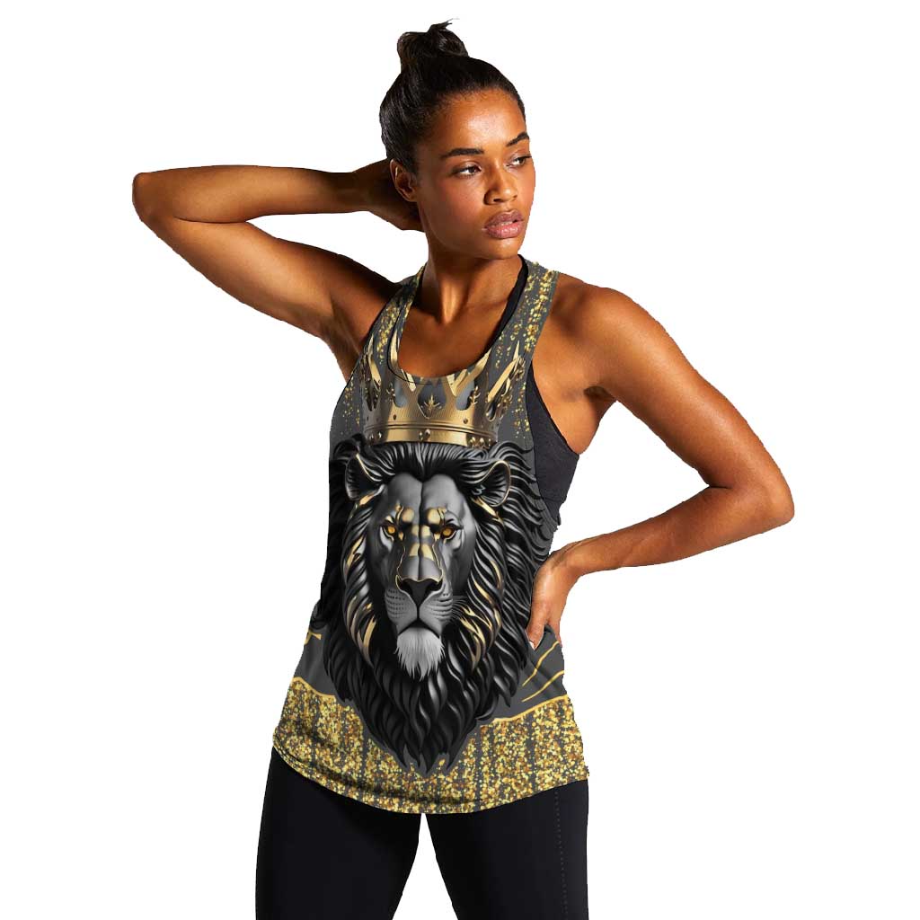 Personalized Black and Gold Lion Africa Women Racerback Tank