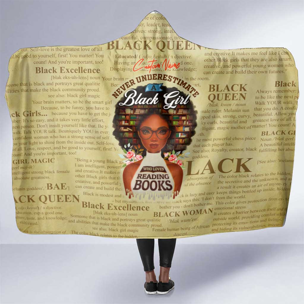 Personalized Black Girl African Hooded Blanket Never Underestimate A Book Lover