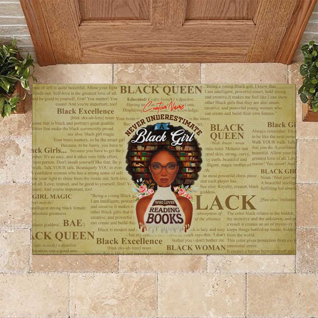 Personalized Black Girl African Rubber Doormat Never Underestimate A Book Lover