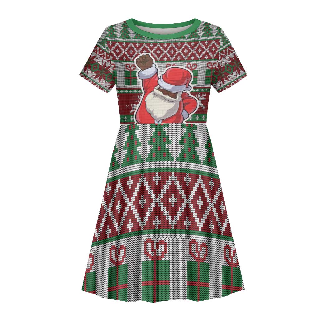 Black Santa Fist Christmas Africa Kid Short Sleeve Dress All Power to the People