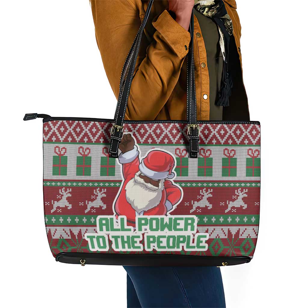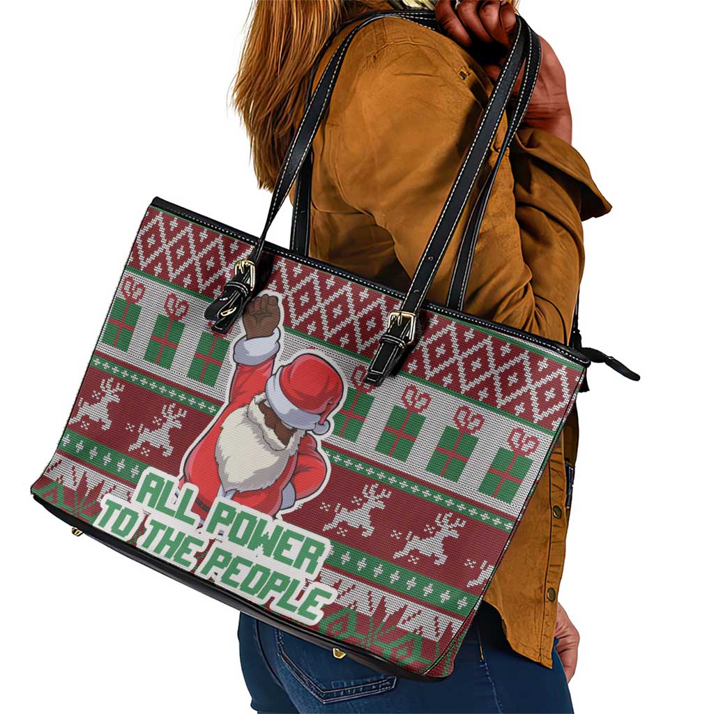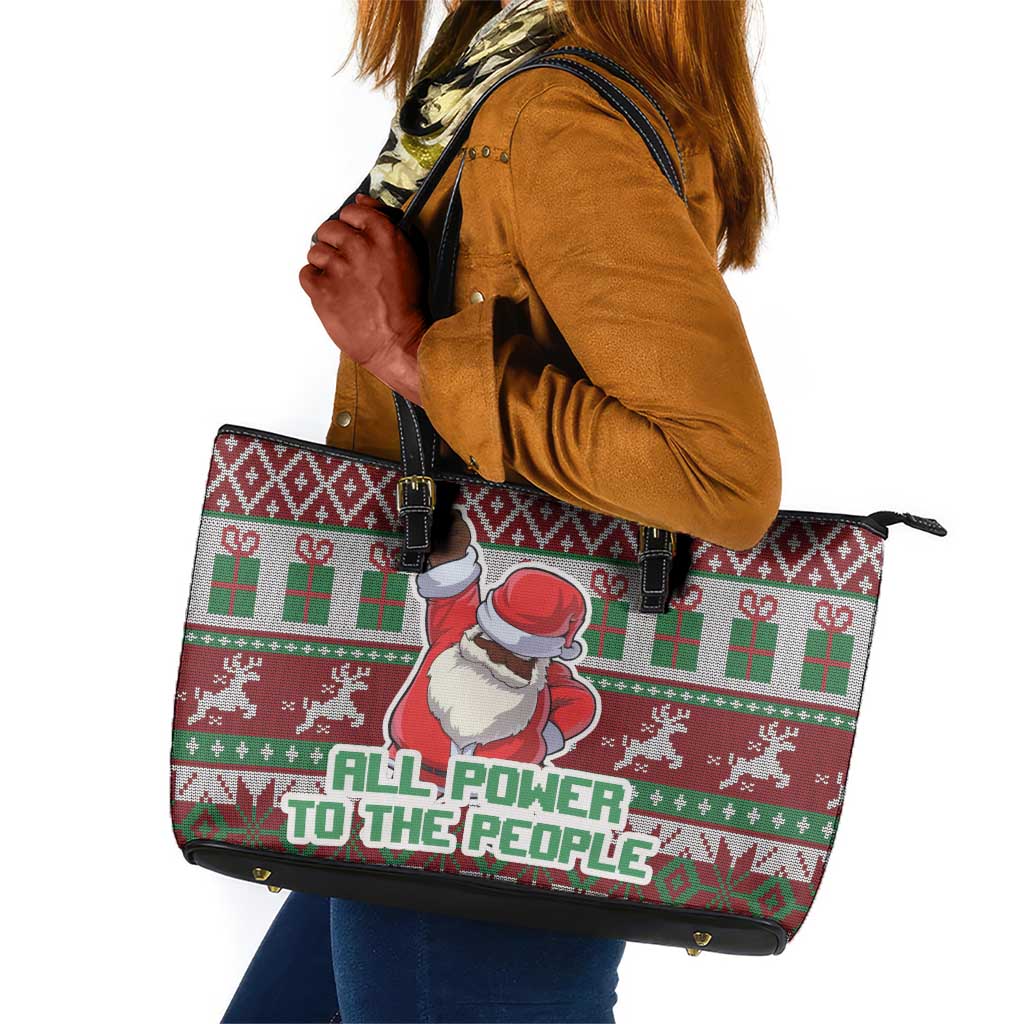 Black Santa Fist Christmas Africa Leather Tote Bag All Power to the People