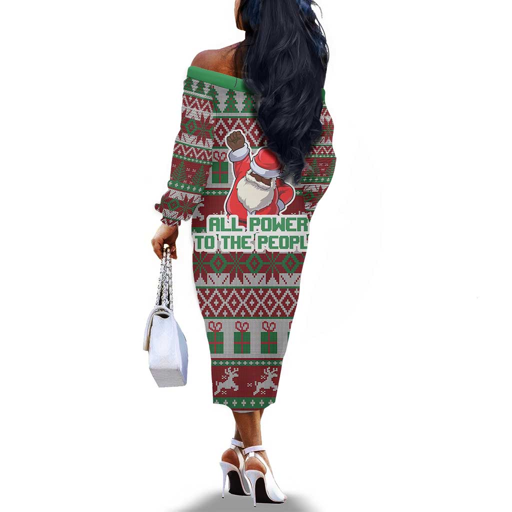 Black Santa Fist Christmas Africa Off The Shoulder Long Sleeve Dress All Power to the People