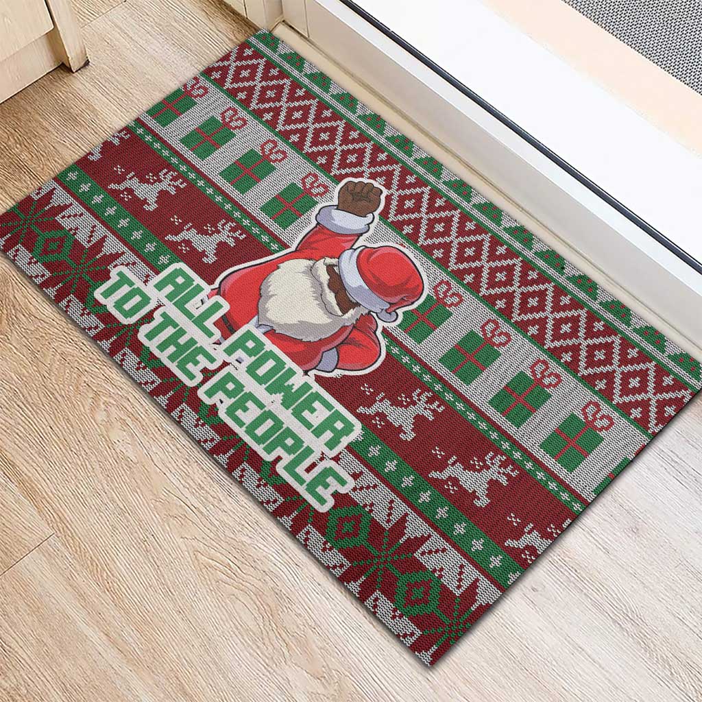 Black Santa Fist Christmas Africa Rubber Doormat All Power to the People