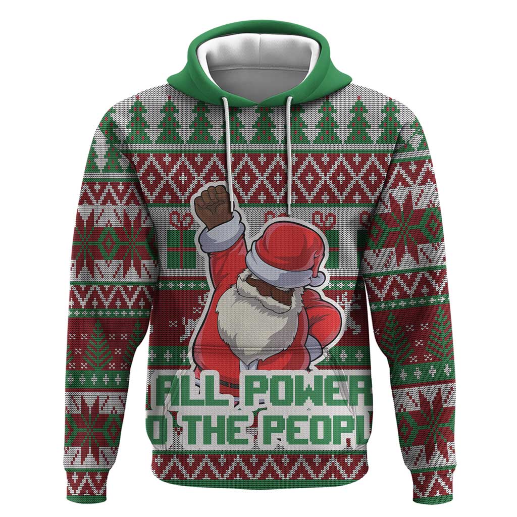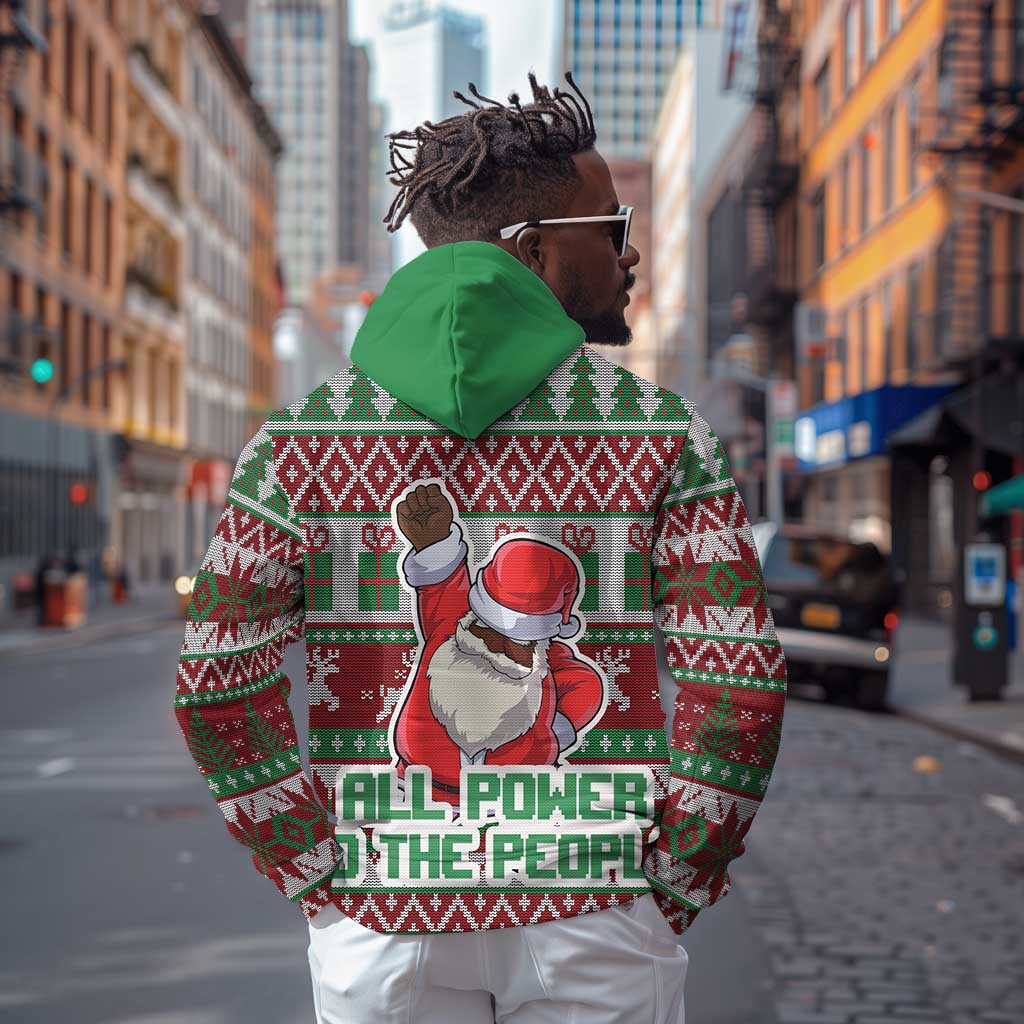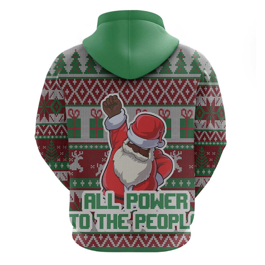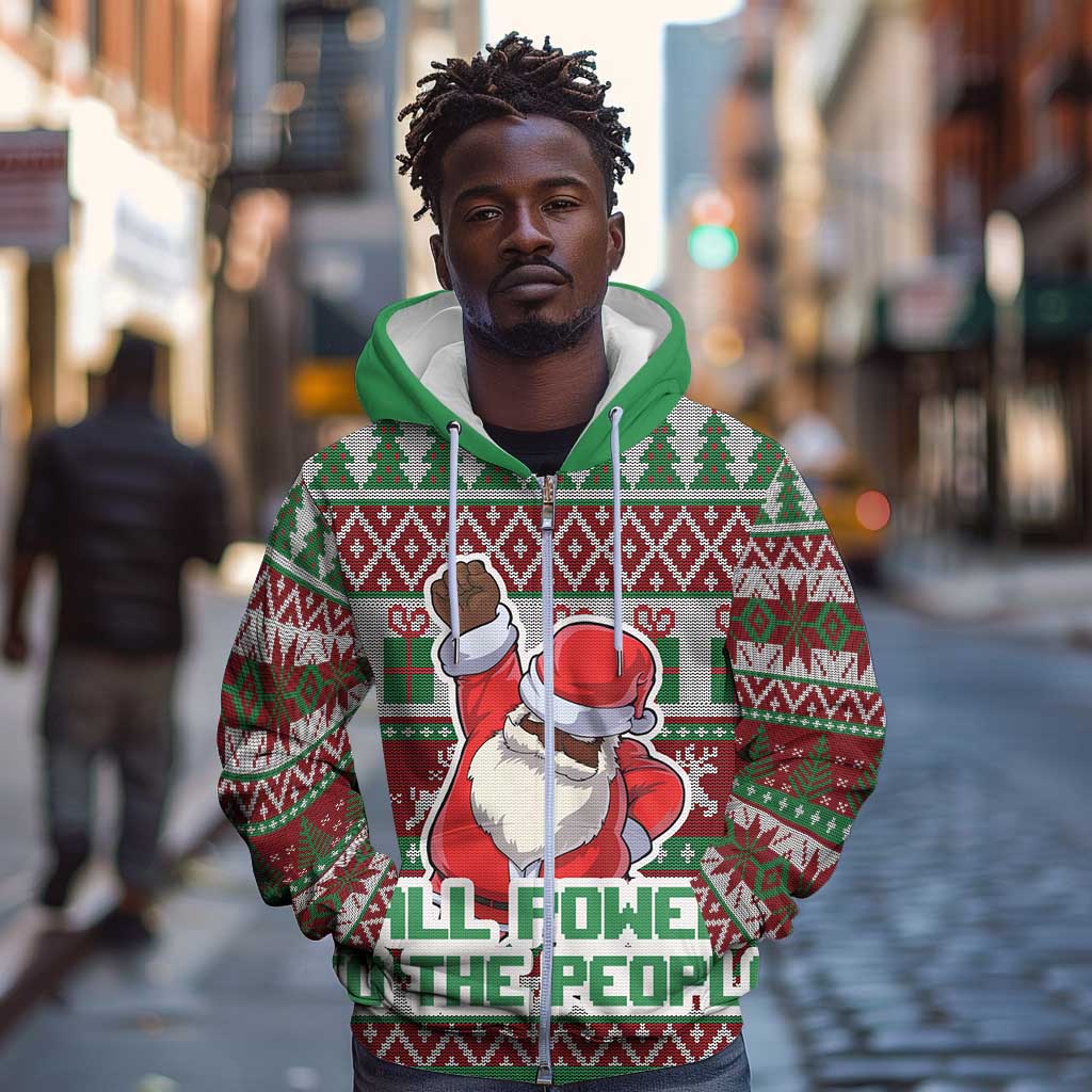 Black Santa Fist Christmas Africa Zip Hoodie All Power to the People
