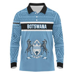 Personalized Botswana Long Sleeve Polo Shirt with Tswana Pula and African Pattern