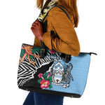 Botswana Independence Day Leather Tote Bag Kalahari Devils Claw Zebra With Arican Pattern