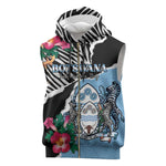 Personalized Botswana Independence Day Sleeveless Zip Hoodie Kalahari Devils Claw Zebra With Arican Pattern