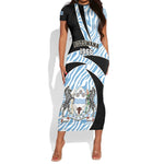 Personalized Botswana Independence Day Short Sleeve Bodycon Dress - Lefatshe la Botswana with Zebra Pattern