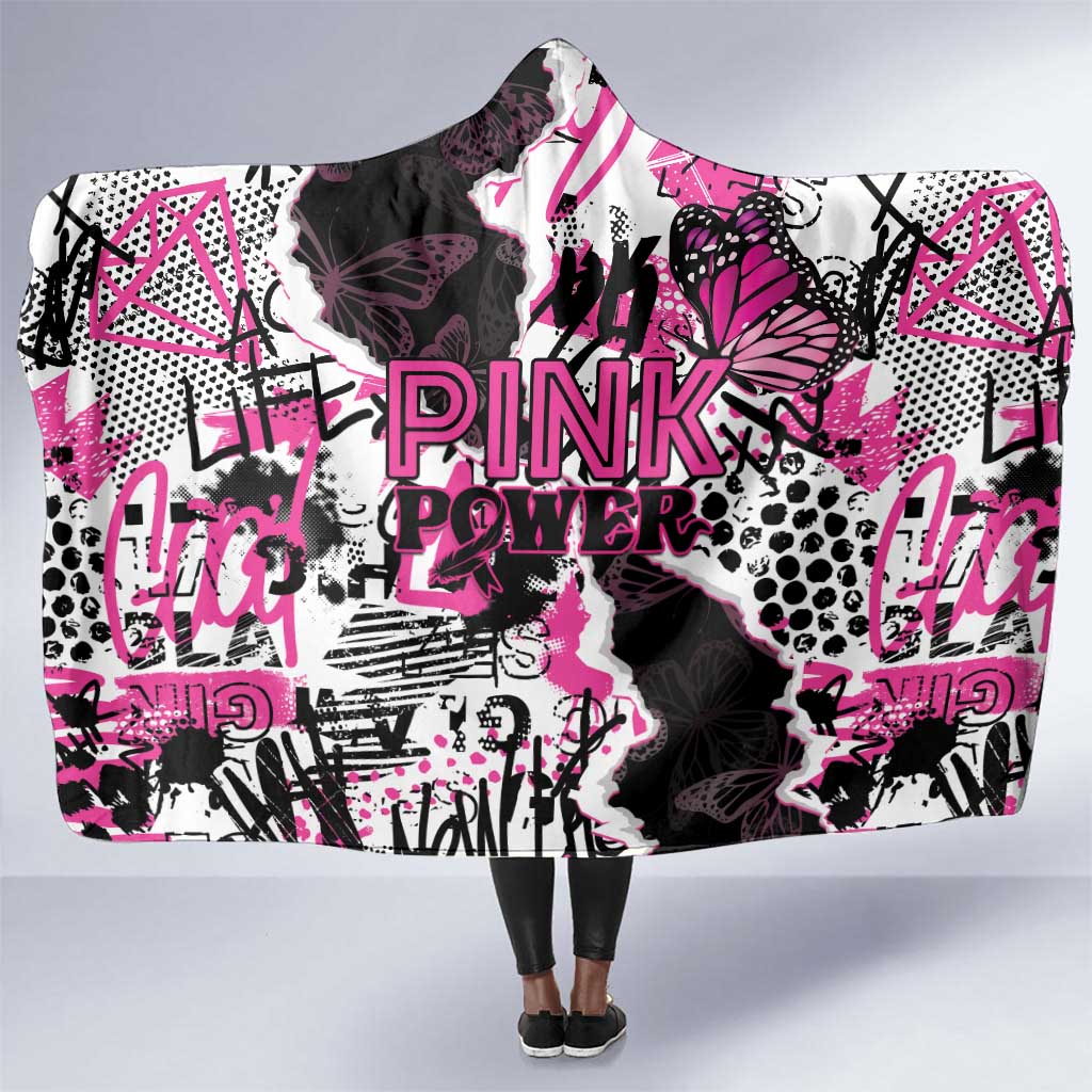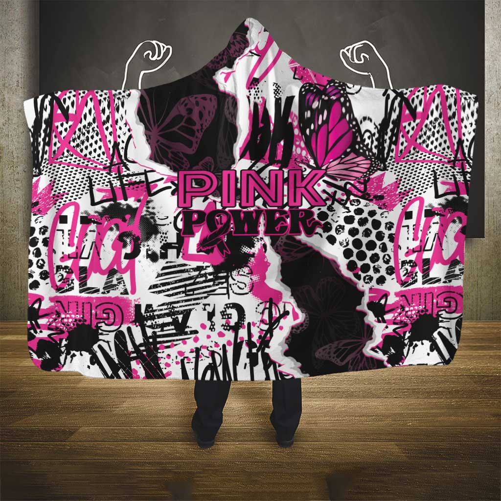 Pink Power Graffiti Hooded Blanket Breast Cancer Awareness