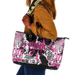 Pink Power Graffiti Leather Tote Bag Breast Cancer Awareness