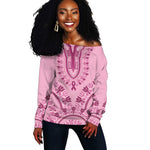 Afro Breast Cancer Awareness Dashiki Off Shoulder Sweater Glamorous Pink