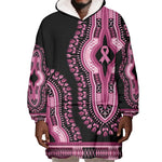 Breast Cancer Awareness Pink Ribbon Afro Wearable Blanket Hoodie Dashiki Style