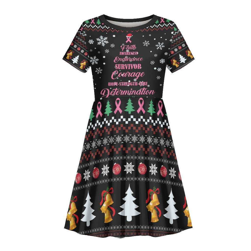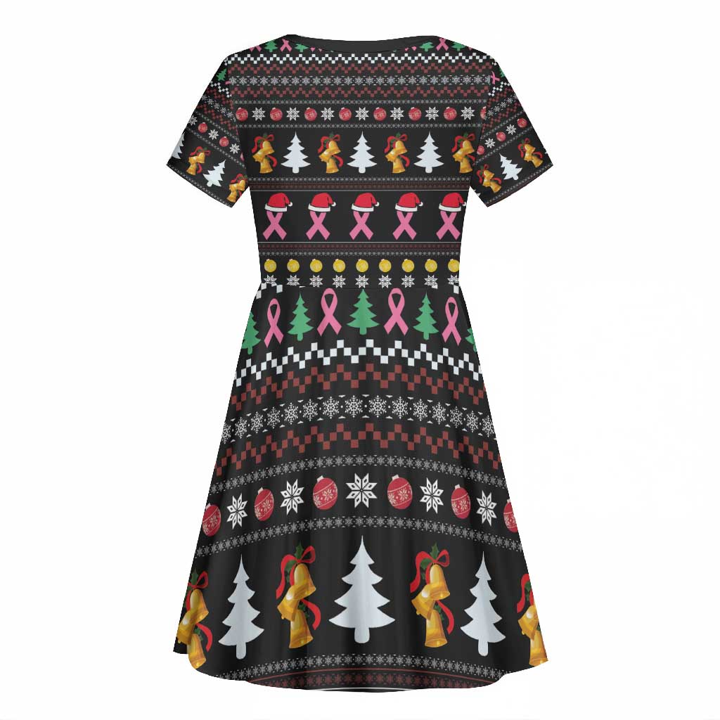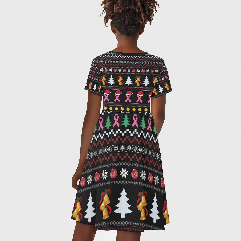 Christmas Tree Breast Cancer Afro Kid Short Sleeve Dress Survivor African