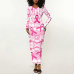 Pink Ribbon With Tie Dye Long Sleeve Bodycon Dress Breast Cancer Awareness