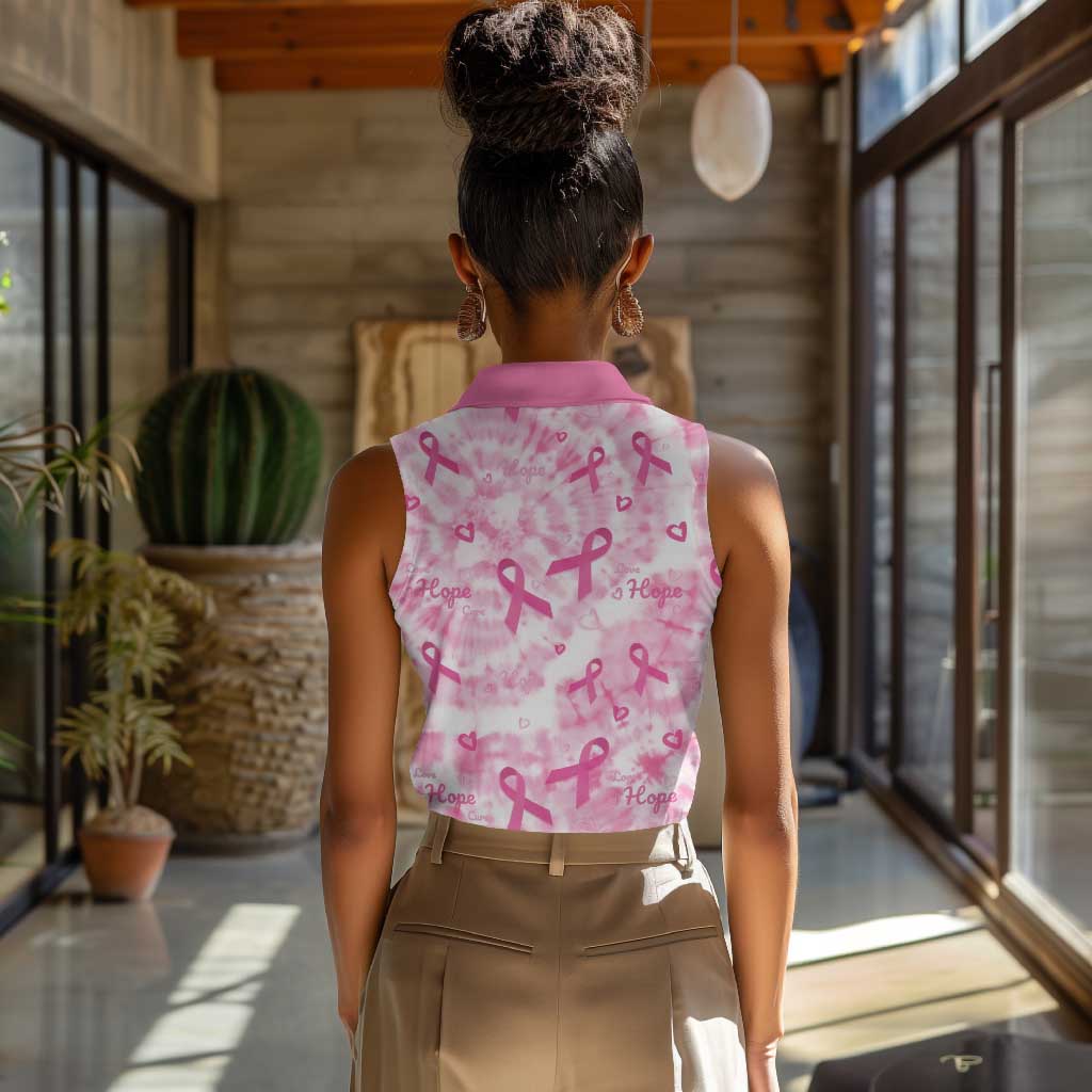 Pink Ribbon With Tie Dye Women Sleeveless Polo Shirt Breast Cancer Awareness